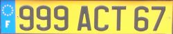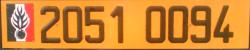 Aktuelles Kennzeichen mit Euroteil (Pflicht seit 1.7.2004), vorne weiß, hinten gelb (seit 10.05.07 auch hinten wahlweise weiß möglich). Zwei- bis vierstellige Zahl, dann