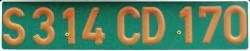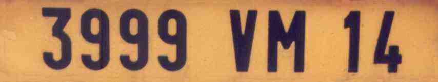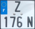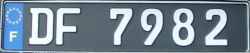 Älteres Kennzeichen mit silberfarbener Schrift auf schwarzem Grund. Die Ausgabe erfolgte bis Ende 1992. Einteilung der Departements wie oben |