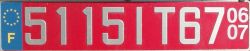 vorübergehende Zulassung - weiße Schrift auf rotem Grund, 1-4 Ziffern + Buchstaben IT + 2 Ziffern für das Département (3 bei Übersee). Ausgabe erfolgt für Personen, die von der Steuer befreit sind. Max. ein Jahr gültig |