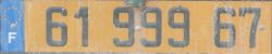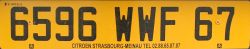 Kennzeichen für Werkstätten und Autohäuser. Druck erfolgt entweder auf schwarzen oder gelb/weißen Platinen. 1-4 Ziffern + Buchstabe W + 2 Ziffern für das Département (3 bei Übersee). Kann an beliebigen Fahrzeugen angebracht werden, Fahrer dürfen aber nur die Werkstattbeschäftigten sein.