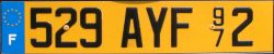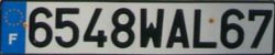 vorübergehende Zulassung bis zur Erteilung eines endgültigen Kennzeichens. 1-4 Ziffern + Buchstaben WW + 2 Ziffern für das Département (3 bei Übersee). Bei Bedarf kann ein dritter Buchstabe verwendet werden. Max. 15 Tage gültig. Druck erfolgt entweder auf schwarzen oder gelb/weißen Platinen.