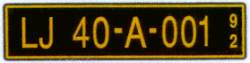 Vorgänger des heutigen Kennzeichens, ohne Euroteil. Das Kennzeichen ist grün umrandet, sonst Aufbau wie oben. |