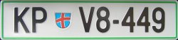 Neues Kennzeichens, jetzt mit Euroteil. Schwarze Schrift auf weißem Grund.