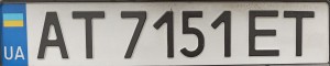 Neue Kennzeichen, ausgegeben ab 2015. Am linken Rand blaues (Euro-ähnliches) Feld mit der Nationalflagge, darunter die Buchstaben UA. Die ersten beiden folgenden Buchstaben geben den Zulassungsbezirk an. |