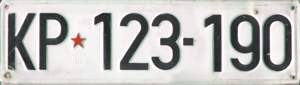Kennzeichen vor 1992, auch mit dem roten Stern. Die heutigen serbisch-montenegrinischen Kennzeichen sehen immer noch so aus,